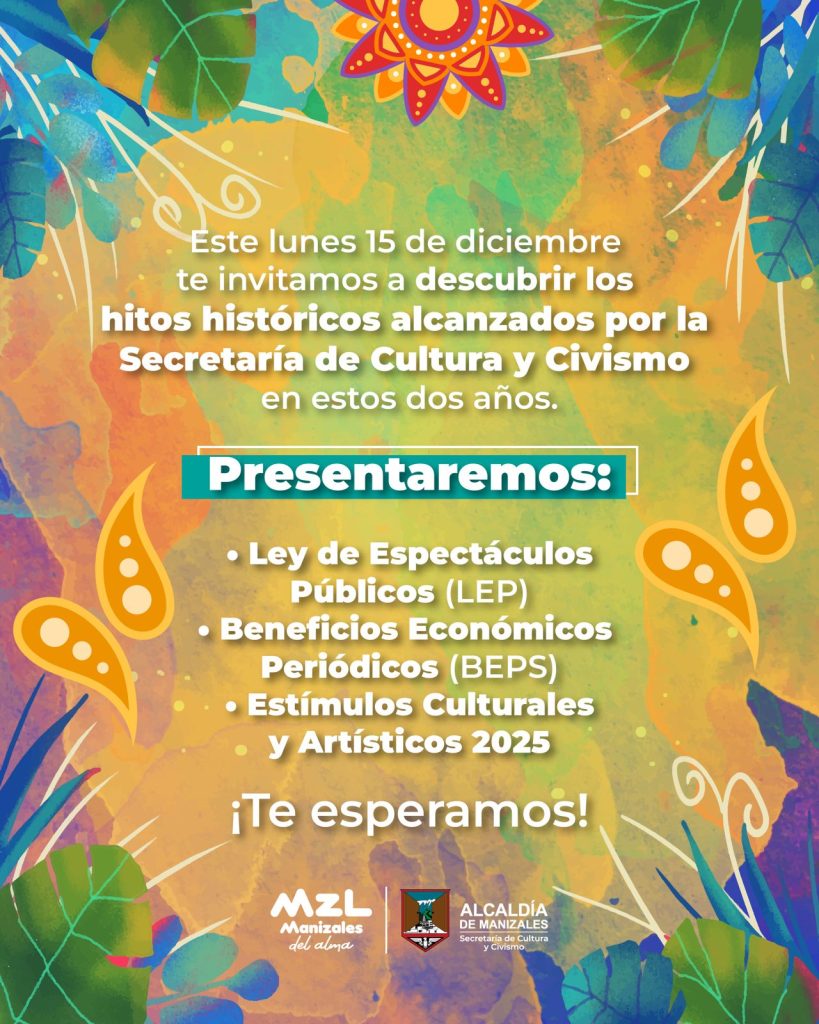 La Secretaría de Cultura y Civismo de Manizales invita a la ciudadanía, artistas, creadores y gestores culturales al cierre de procesos de este 2025, un espacio en el que se socializarán los avances, logros y proyectos que han marcado un antes y un después en la cultura de la ciudad. El encuentro se realizará el […]