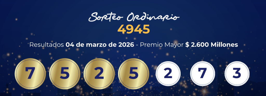 El sorteo número 4945 de la Lotería de Manizales se llevó a cabo el miércoles cuatro de marzo dejando los siguientes resultados:
