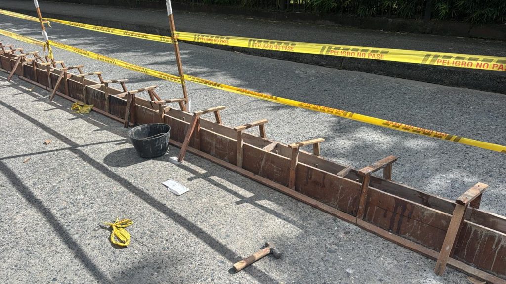 Fotografías: construcción del bordillo reforzado en el sector de la Universidad Autónoma de Manizales