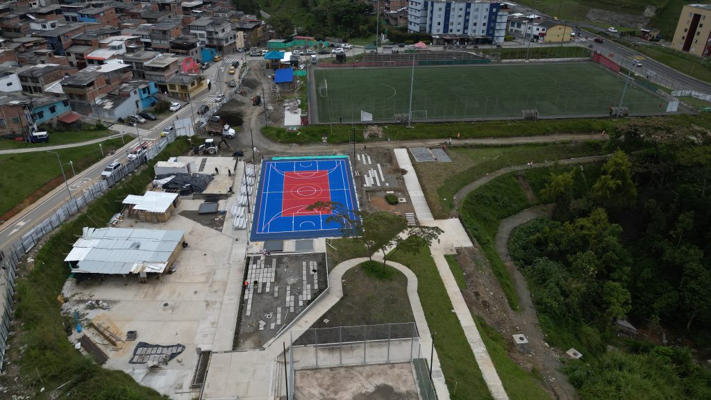 - La intervención, liderada por la Secretaría de Infraestructura y Planeación de la Alcaldía de Manizales, transforma una antigua escombrera en un espacio público para el deporte, la cultura y la integración.