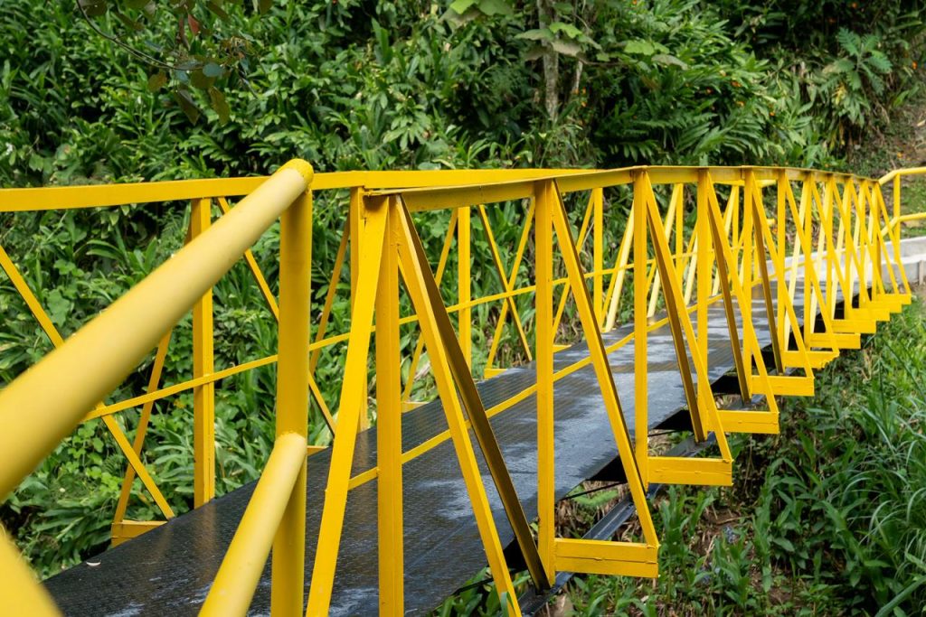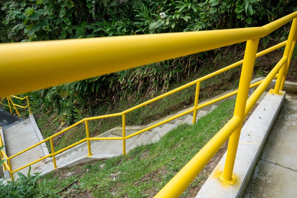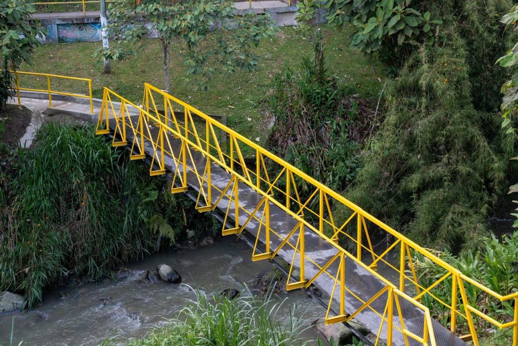 Otro componente fundamental fue la instalación y mantenimiento de 64 metros lineales de barandas metálicas que aportan seguridad y también embellecen el entorno. Asimismo, se adelantaron labores de pintura, mantenimiento correctivo y reparación de los elementos estructurales del puente metálico, incluyendo la rehabilitación de uniones y soportes principales, con lo cual mejora la durabilidad de la infraestructura y se optimiza su aspecto visual.
