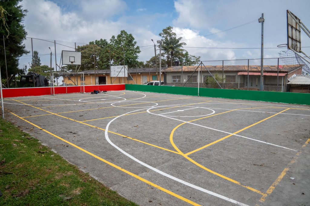 - Los trabajos incluyeron la iluminación del escenario, rocería y limpieza, puerta en malla eslabonada de cerramiento, demarcación de la cancha, malla en nylon, limpieza de canales y, modernización de porterías de fútbol y aros de baloncesto.