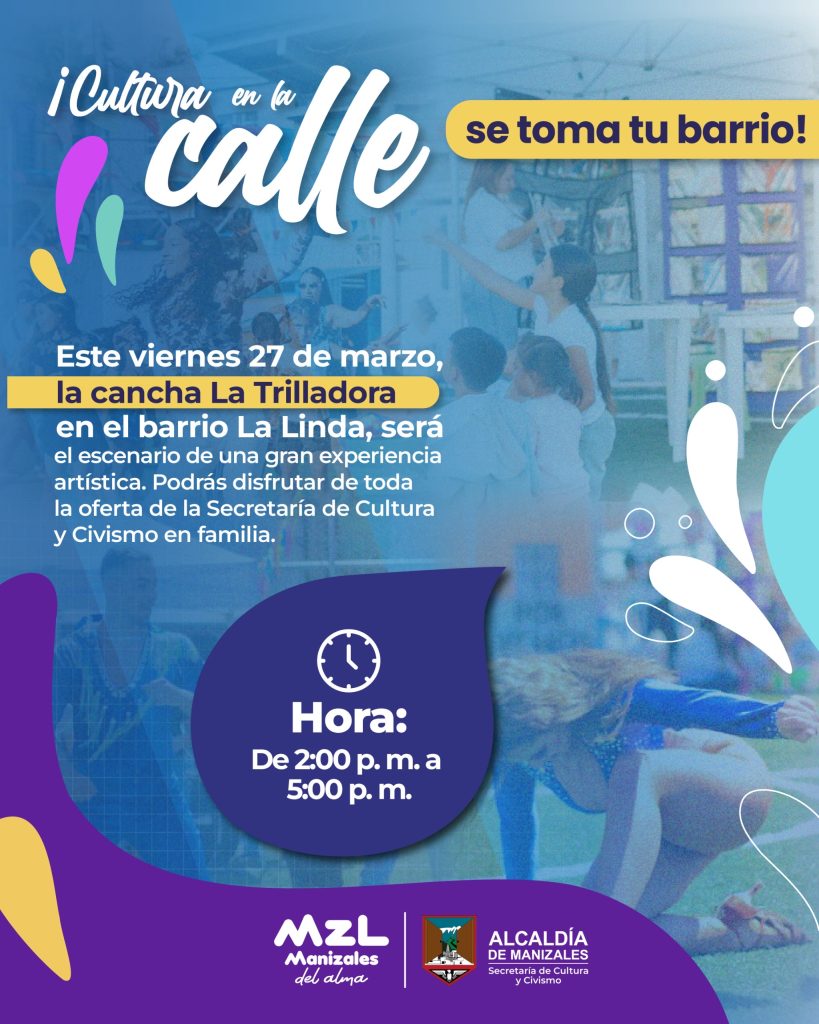 La Alcaldía de Manizales, a través de la Secretaría de Cultura y Civismo, invita a la ciudadanía a participar en ‘Cultura en la Calle’, programa que lleva a los barrios y veredas de la ciudad una amplia oferta cultural, con acceso gratuito para la comunidad. Tras el éxito de la primera jornada, realizada el pasado […]