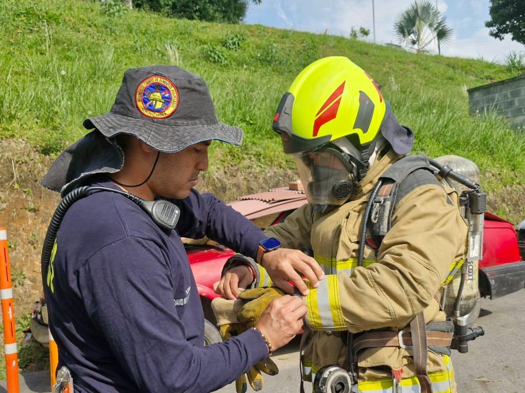 La capacitación se realiza en el Centro de Entrenamiento de los Bomberos Voluntarios de Chinchiná, un espacio especializado que permite a los bomberos enfrentarse a escenarios reales y controlados, garantizando altos estándares de seguridad durante cada ejercicio.