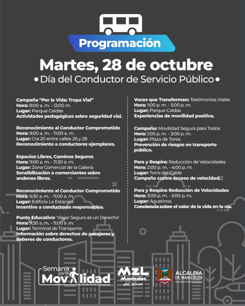 Agenda del martes 28 de octubre — Día del Conductor de Servicio Público:
