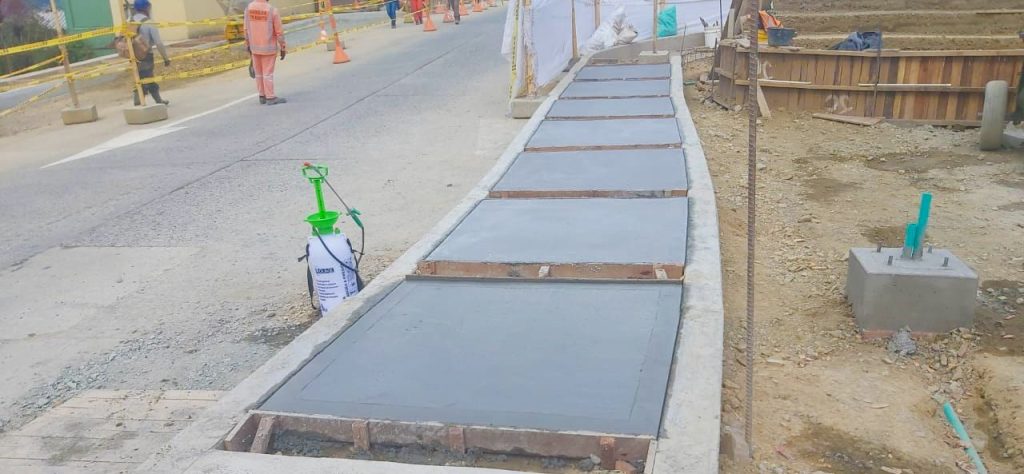 Se han realizado vaciados de sardineles, aplicación de base y subbase, vaciado de andenes, vigas de cimentación y escaleras.