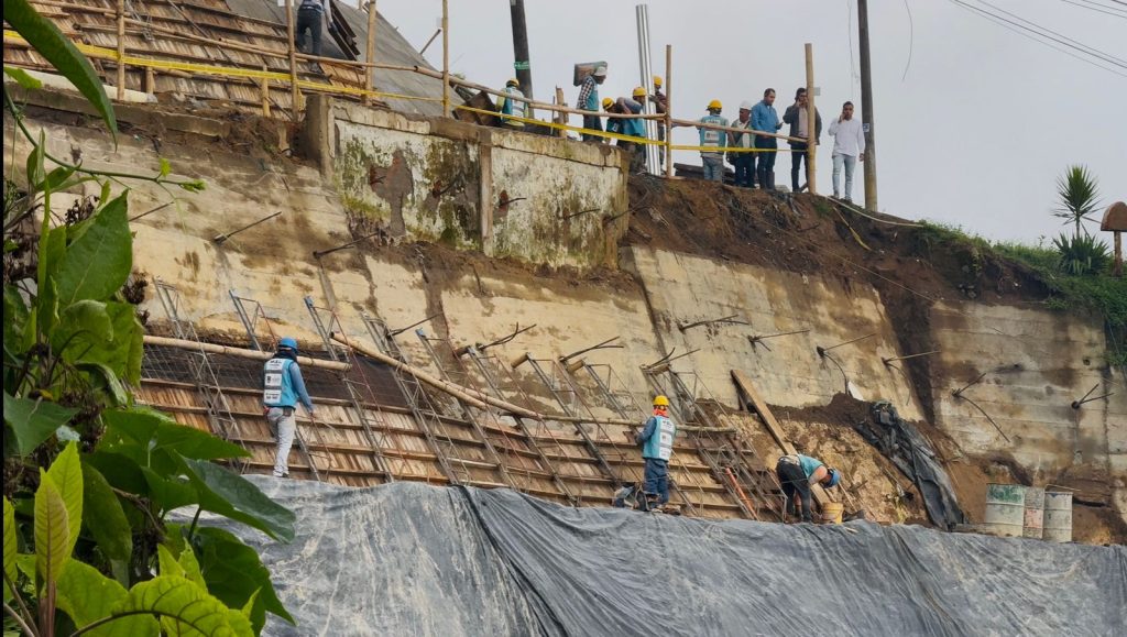 La Administración Municipal, a través de la Unidad de Gestión del Riesgo y la Secretaría de Infraestructura, trabaja en la ejecución de una obra de mitigación de riesgo en el barrio Galán, en la comuna San José, con una inversión superior a los 600 millones de pesos. Las intervenciones contemplan la restitución de muros que se encontraban inclinados, la construcción de una pantalla en la parte superior del talud y actualmente se adelanta la construcción de pantalla en la zona inferior, así como la instalación de anclajes activos, el perfilamiento del talud y la conformación de terrazas.