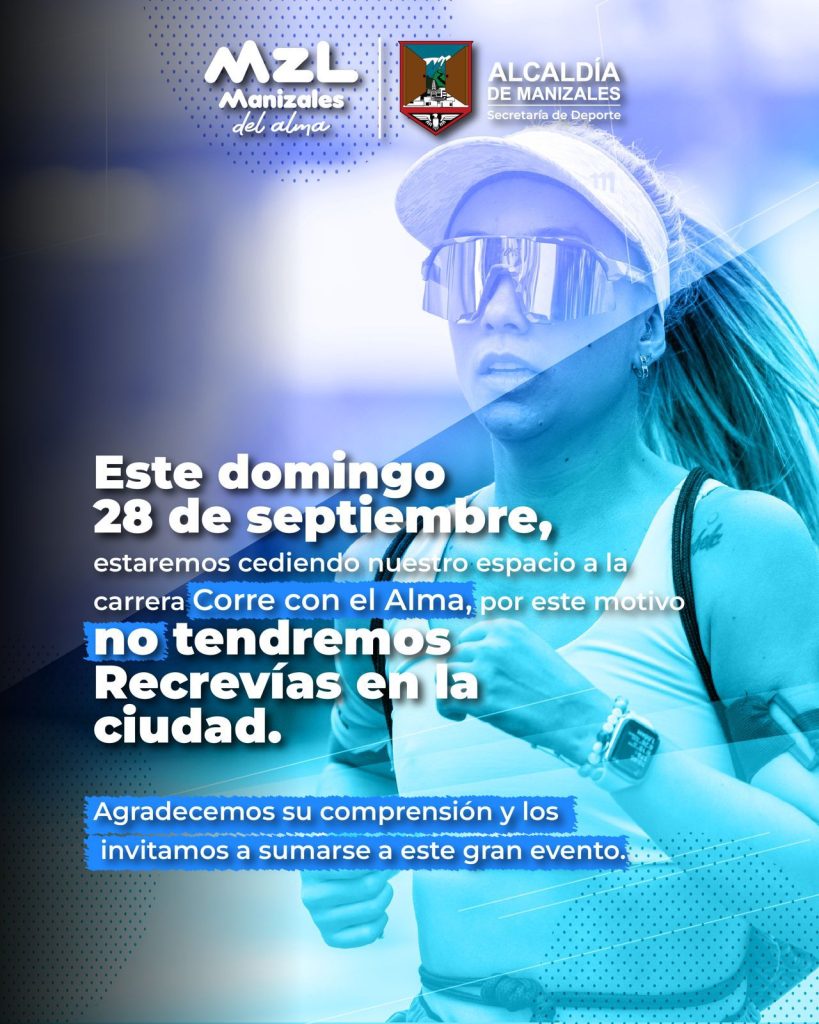 Este domingo 28 de septiembre, Manizales se llenará de energía con el desarrollo de la carrera ‘Corre con el Alma’, evento deportivo y social que busca fomentar la actividad física, la solidaridad y la integración comunitaria.