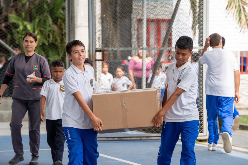 Gracias a las alianzas público-privadas y al respaldo solidario de empresas y ciudadanos, cada niño recibió un kit escolar con los elementos esenciales para su proceso académico, herramienta necesaria para iniciar y continuar el año escolar con entusiasmo y mejores condiciones.