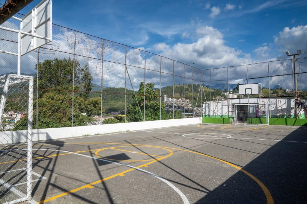 - Los trabajos incluyeron la demarcación de la cancha, iluminación del escenario, modernización de las porterías de microfútbol y tableros de baloncesto, arreglo de la malla de cerramiento perimetral y, rocería y limpieza general.