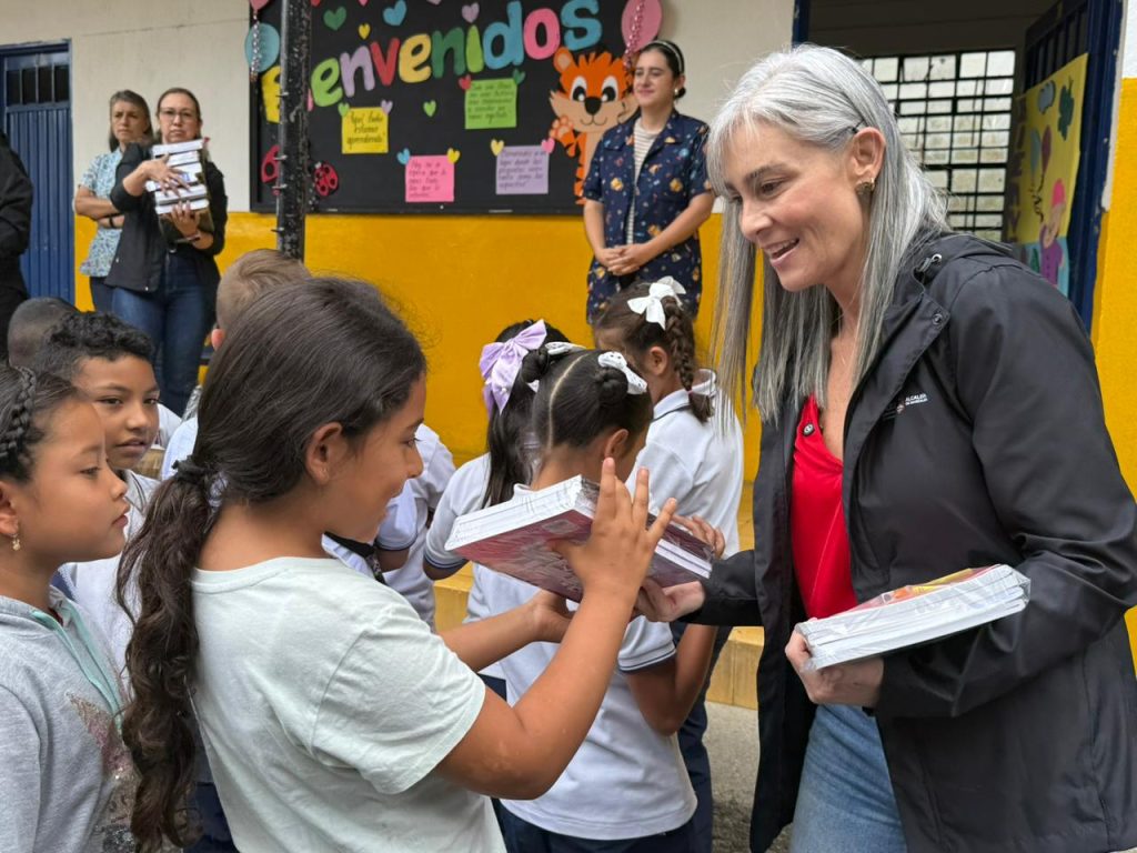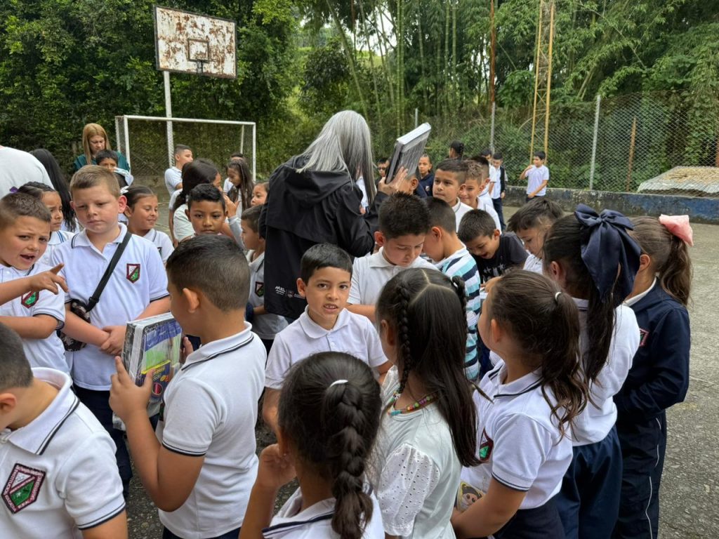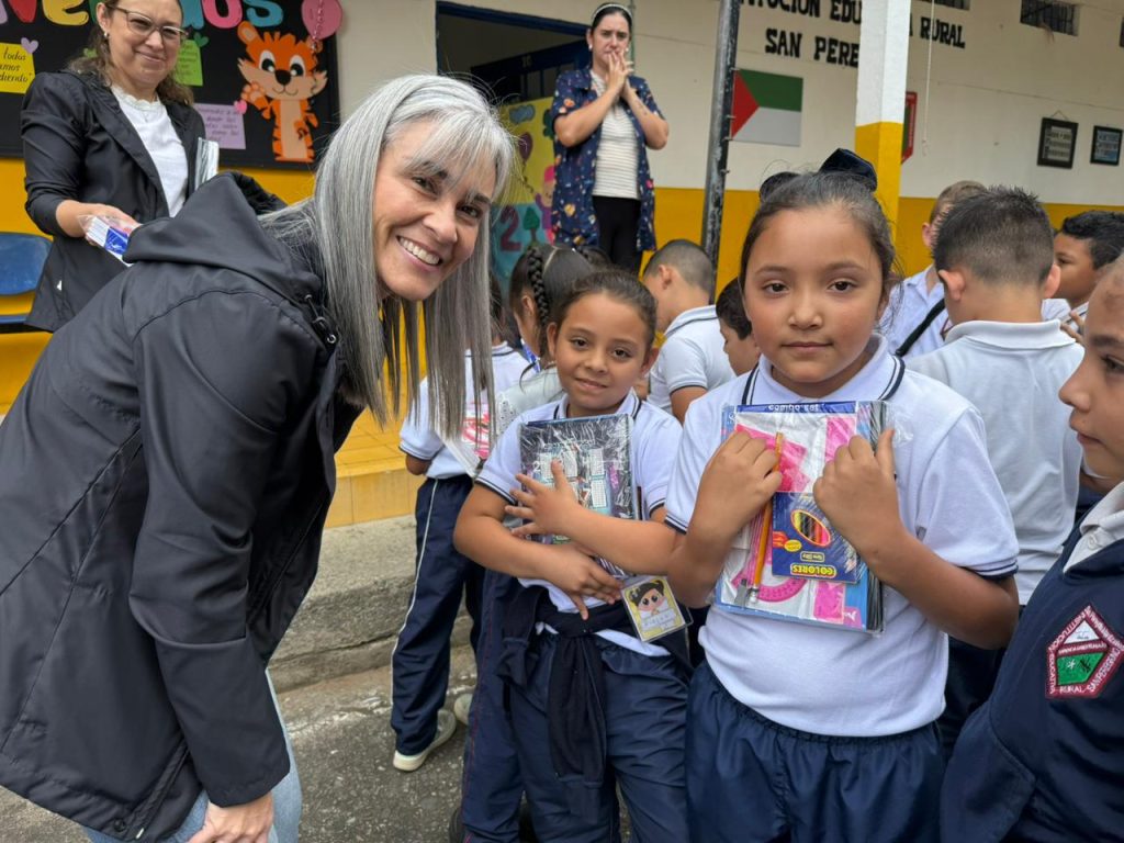 La Gestora Social de Manizales, Juliana Londoño Villa, realizó la entrega de paquetes escolares a niños y niñas de primaria de la Institución Educativa Rural San Peregrino, como parte de una campaña solidaria que busca apoyar el proceso educativo y aliviar la carga económica de las familias más vulnerables del municipio.