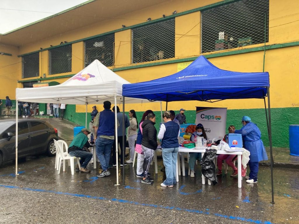 Fotografías: equipo de trabajo social y atención en salud en pabellones y calles de la Galería