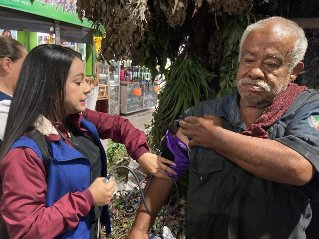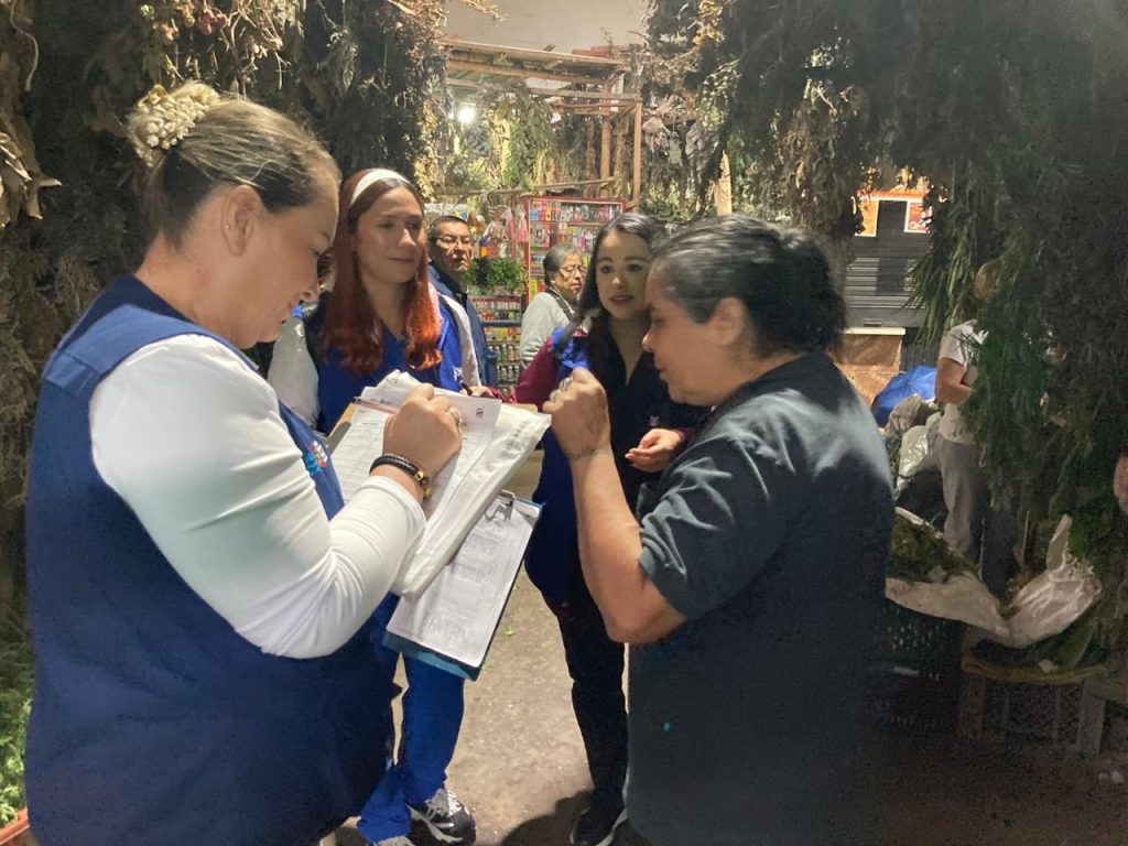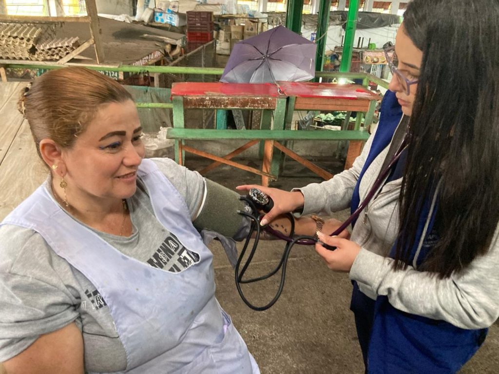 La visita de los equipos de salud y de familia, de Assbasalud y de las Secretarías Desarrollo Social y, de las Mujeres y Equidad de Género logró acercamientos con los vendedores en los pabellones de ramas, el de carnes y de frutas y verduras; a ellos les ofrecieron atención en control de presión, peso, tallaje y otros servicios de salud.