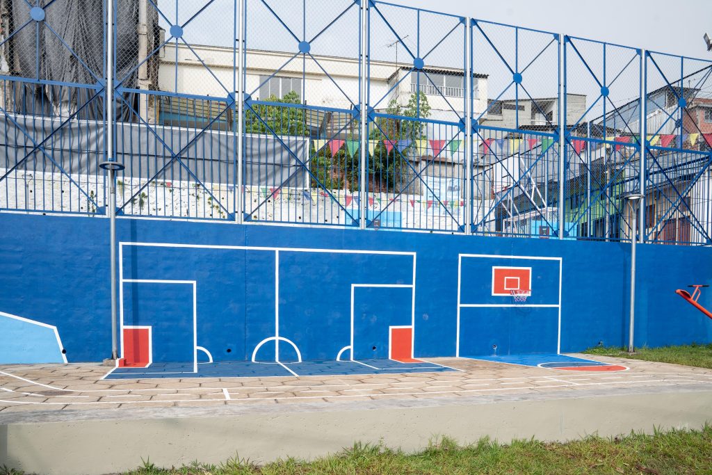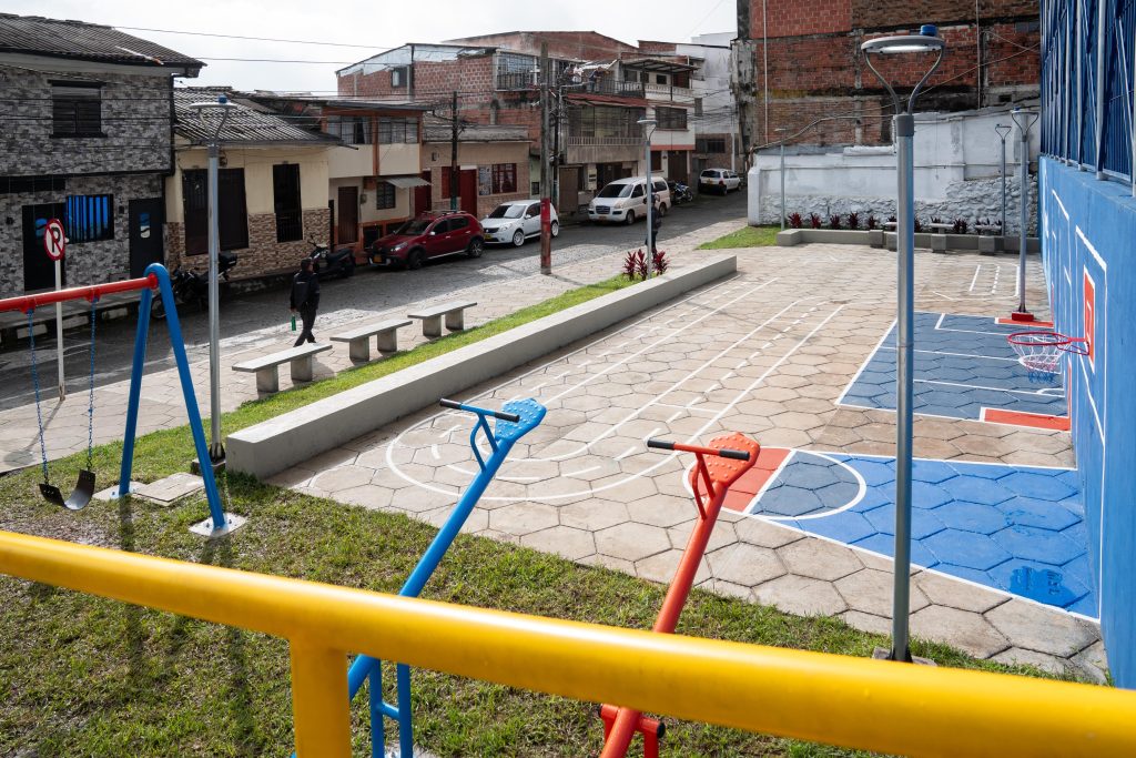 - El escenario, que suma 884 metros cuadrados de espacio público, cuenta con cancha deportiva, graderías, plazoleta, parque, iluminación y accesos incluyente.