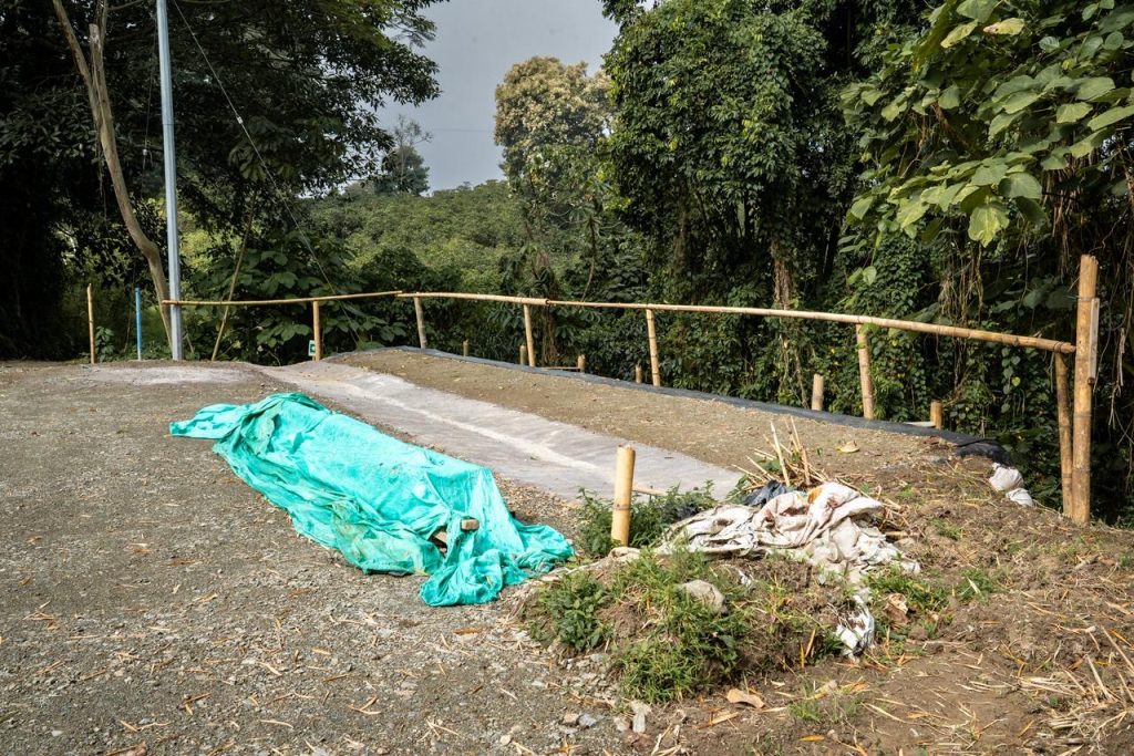 Fotografías: obras en la cancha de fútbol de la vereda La Cabaña
