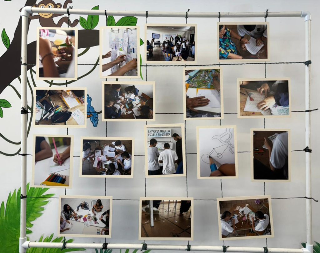 La escuela se desarrolló a través de módulos temáticos que invitaron a los participantes a construir narrativas e imaginarios propios. El deseo central fue incentivar la creatividad y el pensamiento crítico, dotando a los estudiantes de herramientas prácticas como el collage, la fotografía, el mapeo, la escritura, el dibujo, la composición y la encuadernación.