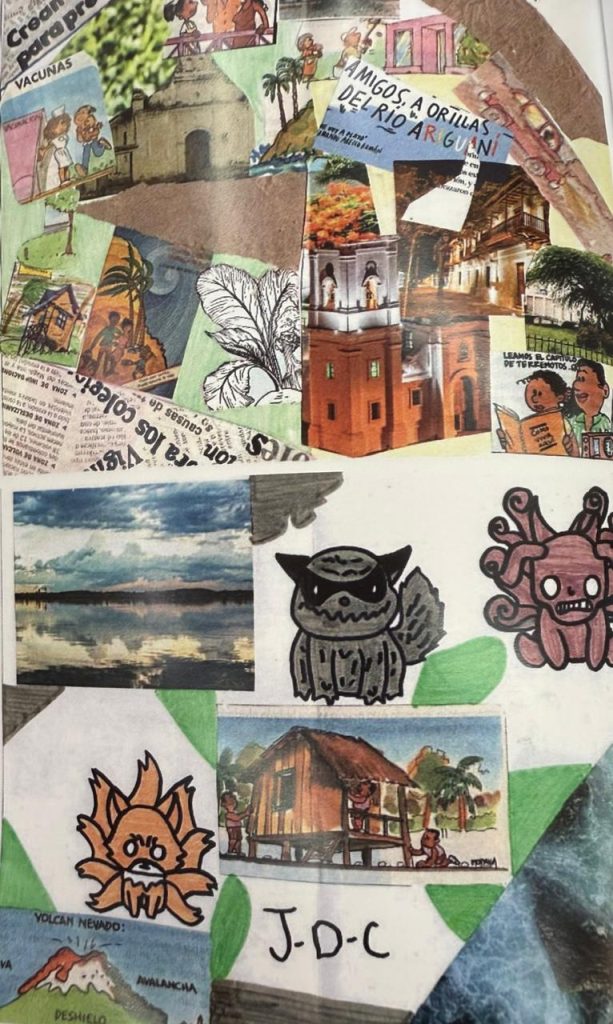 Arte y Ficción: en el aula se exploró la curiosidad y creatividad donde los estudiantes de décimo grado proyectaron con palabras, dibujos y collages, las transformaciones de personajes, barrios, habitantes, ciudades en una forma alternativa donde la introspección y la subjetividad dominan este espacio del arte y la ficción.
