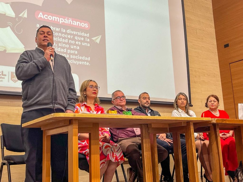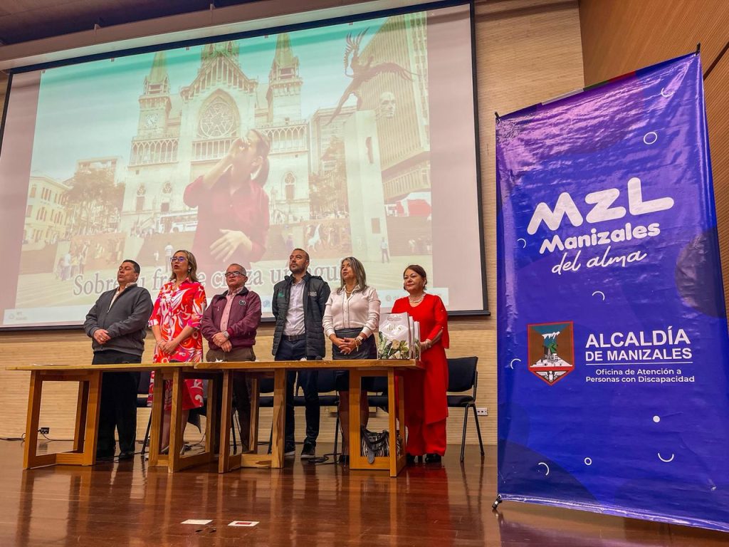 En la mesa principal estuvieron presentes Antony Aristizábal, coordinador de la Red Pública de Bibliotecas; Sulay Rocío Echeverry Mejía, delegada de la Secretaría de Educación; Lishet Paola Arcila, jefa de la Oficina de Atención a Personas con Discapacidad; y Eucario Ramírez, representante de Abre tus Ojos y líder de la iniciativa.
