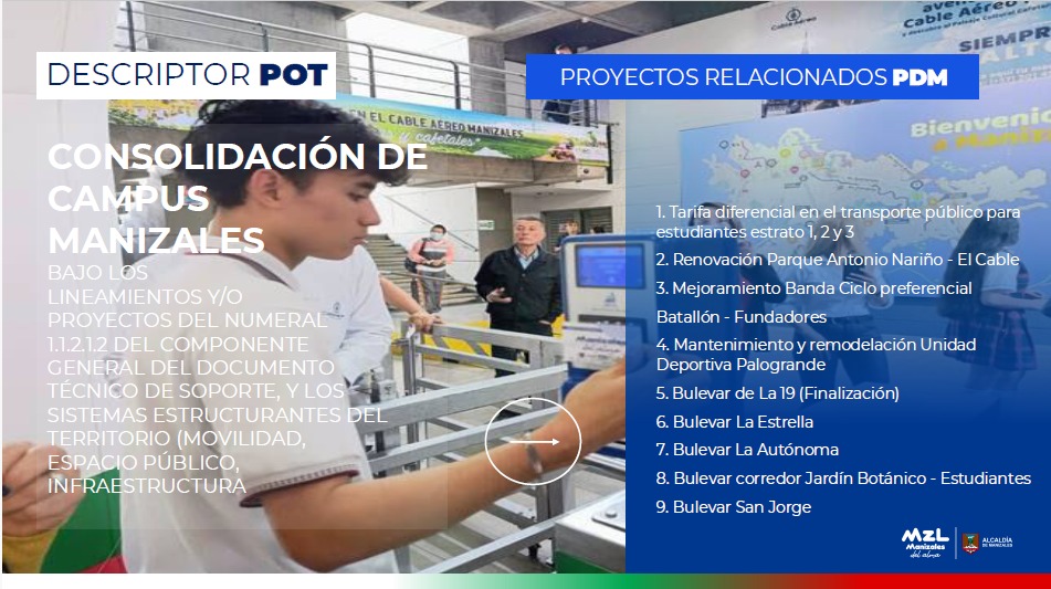 - La Alcaldía de Manizales presentó al Concejo Municipal un completo informe sobre el progreso en la ejecución del Plan de Ordenamiento Territorial (POT).