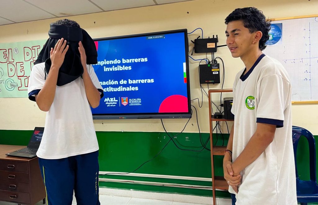 En el Colegio Atanasio Girardot (en el barrio Fátima, de Manizales) los estudiantes participaron del taller “Rompiendo barreras invisibles, eliminación de barreras actitudinales”, estrategia liderada por la Alcaldía de Manizales, a través de la Oficina de Atención a Personas con Discapacidad, que busca que la ciudad se convierta en un territorio verdaderamente inclusivo.