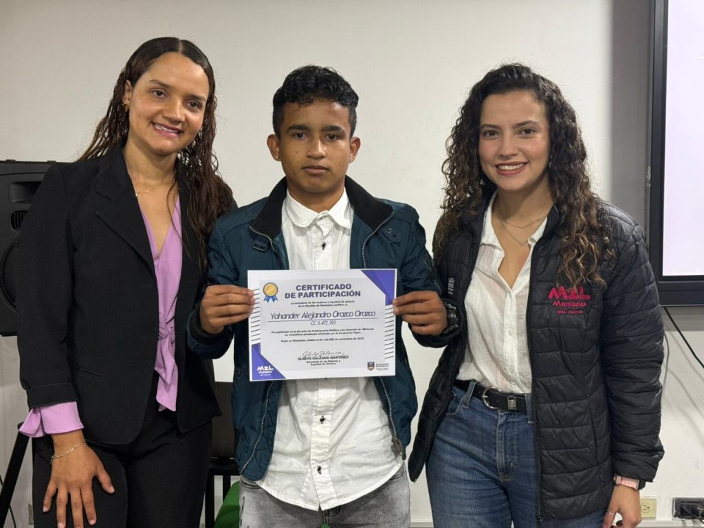 La beneficiaria de la Escuela de Participación Política, Valentina López Rodríguez, expresó su agradecimiento: “el día de hoy nos encontramos acá en el Teatro Fundadores, culminando esta etapa y este proceso tan bonito que vivimos muchos jóvenes en la Escuela de Participación Política, llena, me voy llena de mucho conocimiento y con el compromiso de poder, en mi cargo también de líder juvenil del municipio de Villamaría, hacer extenso esta oportunidad y este aprendizaje que recibimos durante todo este proceso de participación política…”.