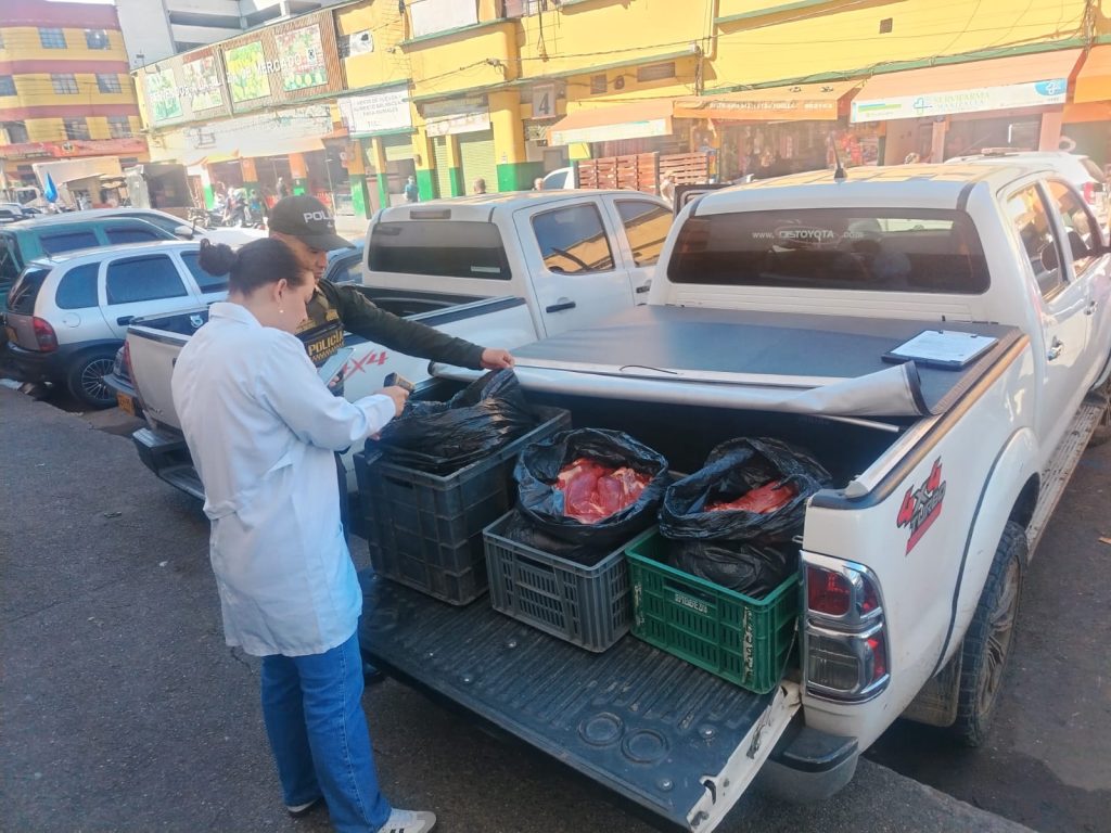 En uno de los más recientes operativos, se logró la incautación de aproximadamente 141 kilogramos de carne de res, gracias a un trabajo articulado entre la Policía Ambiental y la Secretaría de Salud. El producto era transportado en un vehículo particular no autorizado para el transporte de alimentos, incumpliendo las condiciones mínimas exigidas por la normatividad sanitaria vigente.