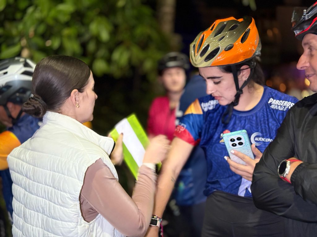A lo largo del recorrido, los ciclistas disfrutaron de la iluminación nocturna, la música y la alegría que caracterizó el evento. Incluso la lluvia leve que acompañó la noche no fue impedimento para que los participantes completaran el recorrido con entusiasmo y responsabilidad.