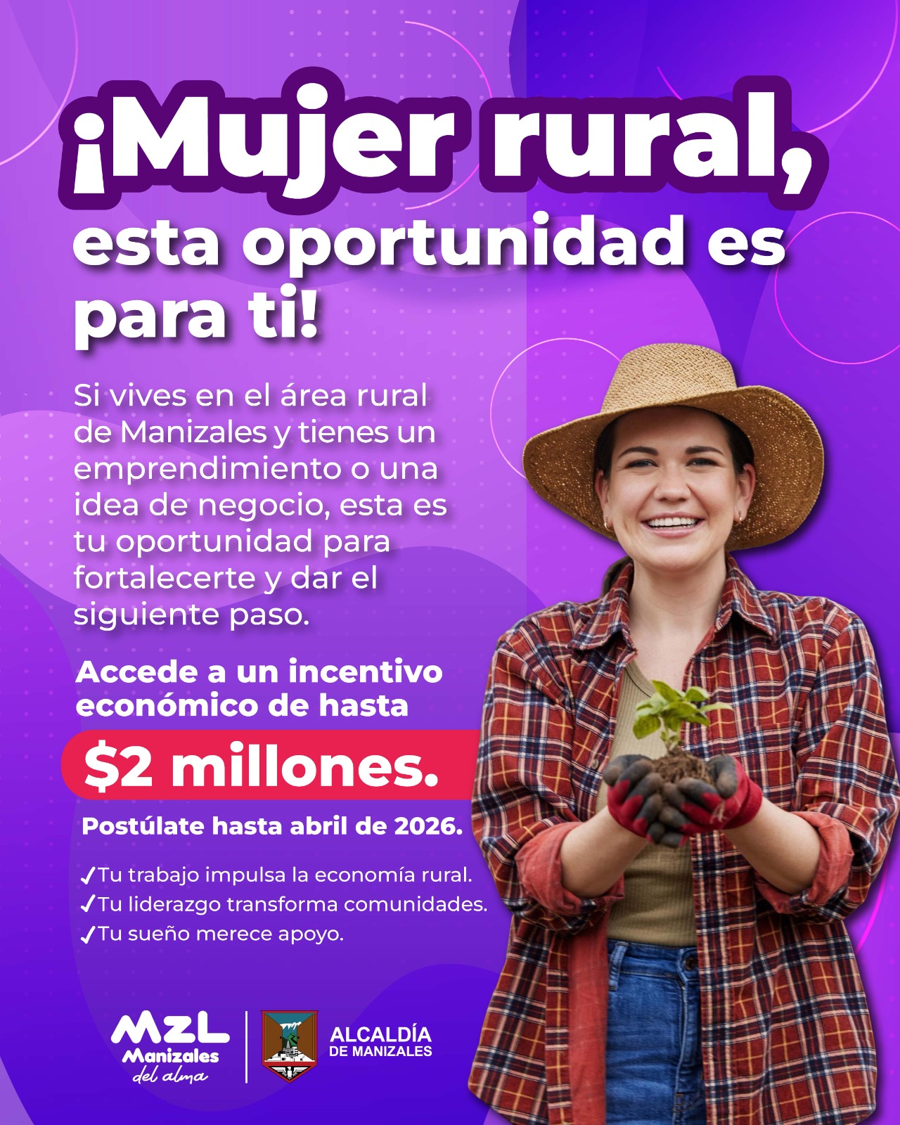 Alcaldía de Manizales Mujeres rurales de Manizales podrán impulsar sus emprendimientos con el programa ‘Mujer Rural’ marzo 2, 2026 3:13 pm