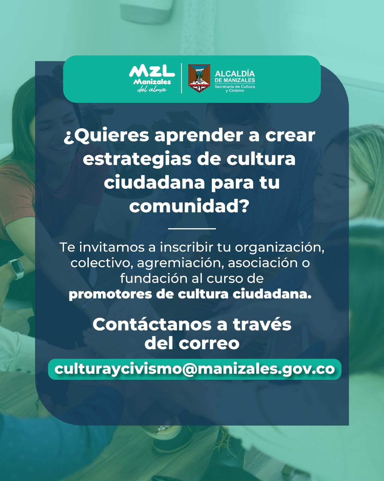 Secretaría de Cultura y Civismo Secretaría de Cultura y Civismo abre proceso de formación para el curso de Promotores de Cultura Ciudadana marzo 11, 2026 4:15 pm
