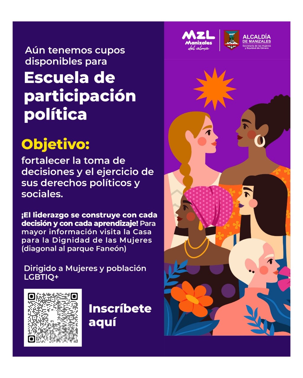 Alcaldía de Manizales La Secretaría de la Mujer y Equidad de Género de Manizales invita a que se vinculen a la Escuela de Participación Política septiembre 22, 2025 4:53 pm
