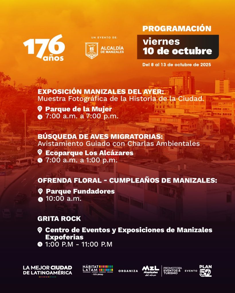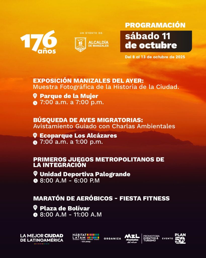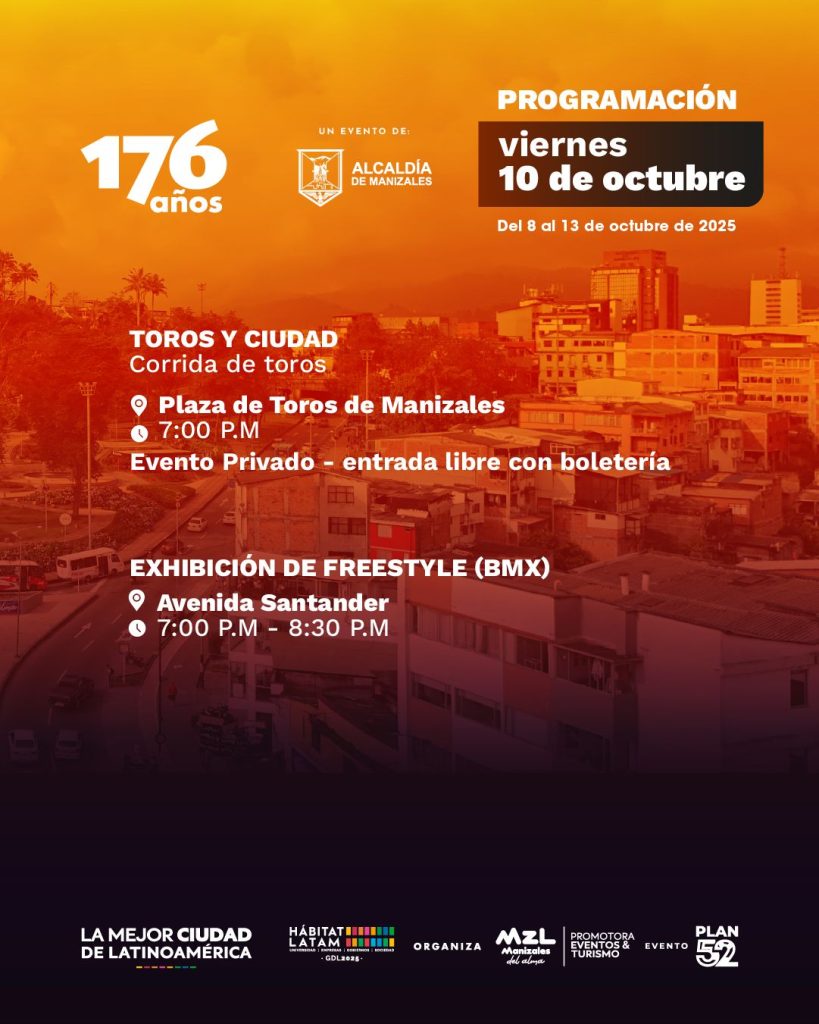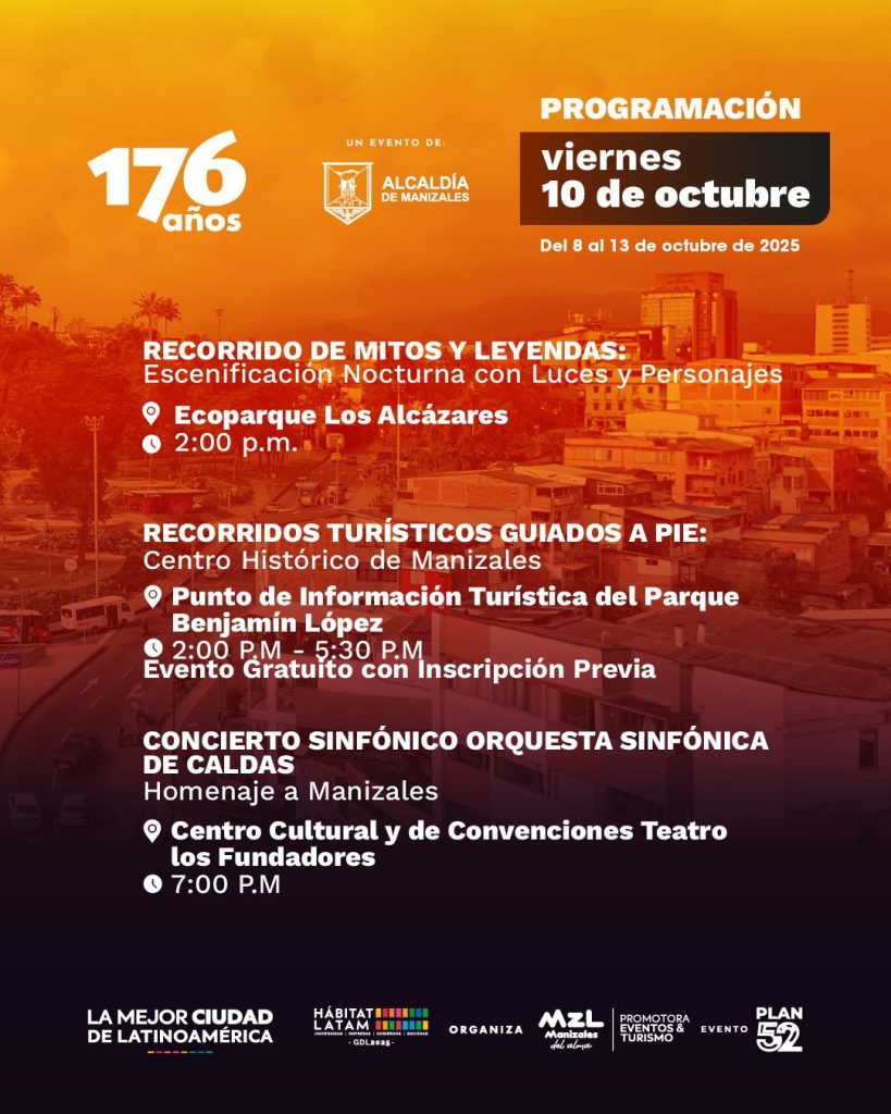 Esta es la programación de las actividades para la celebración del cumpleaños 176 de Manizales del Alma, la mejor ciudad para la vida en Latinoamérica.