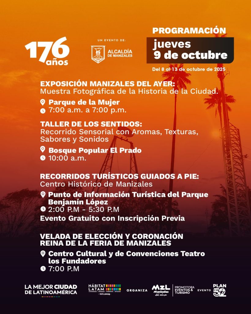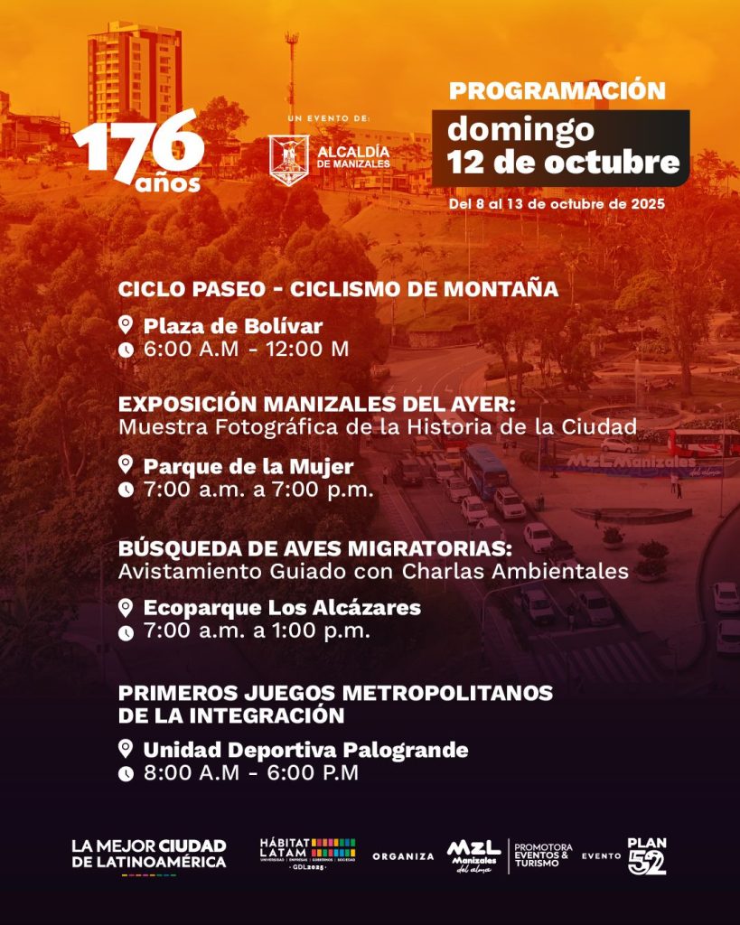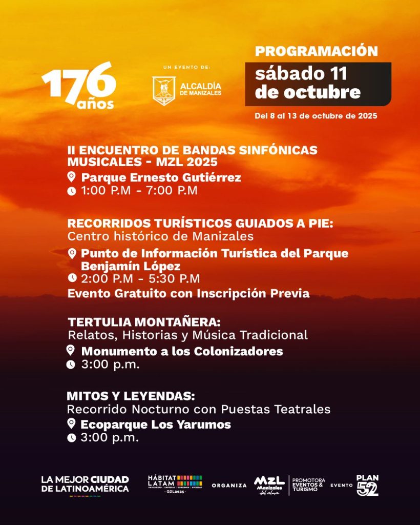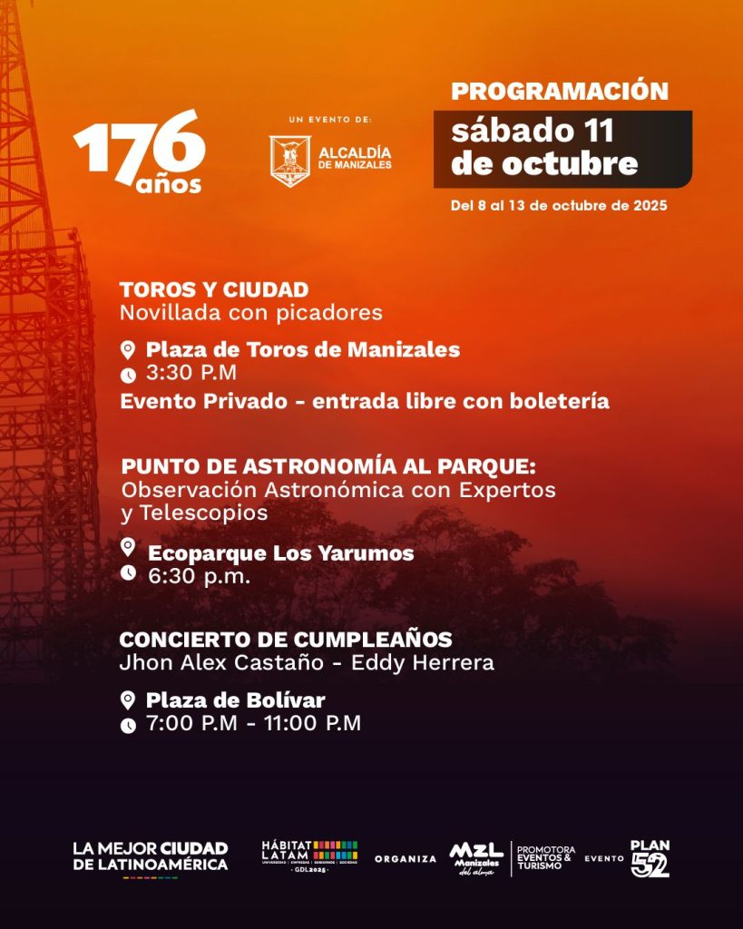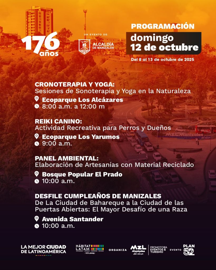 Esta es la programación de las actividades para la celebración del cumpleaños 176 de Manizales del Alma, la mejor ciudad para la vida en Latinoamérica.