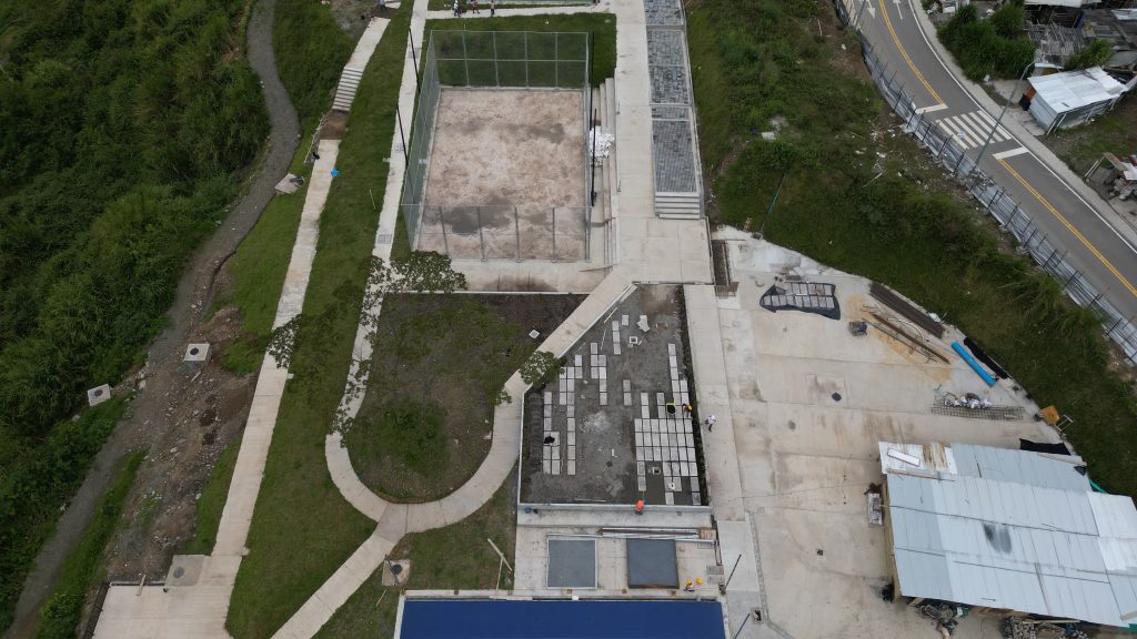 Las labores descritas evidencian una etapa en la que el proyecto integra componentes técnicos y urbanos. La instalación de mobiliario y juegos infantiles define áreas destinadas al uso familiar, mientras que los equipos deportivos amplían la oferta para la actividad física. La participación del Instituto de Valorización de Manizales (INVAMA), en la instalación de luminarias permite proyectar condiciones adecuadas de seguridad y uso en horarios extendidos.
