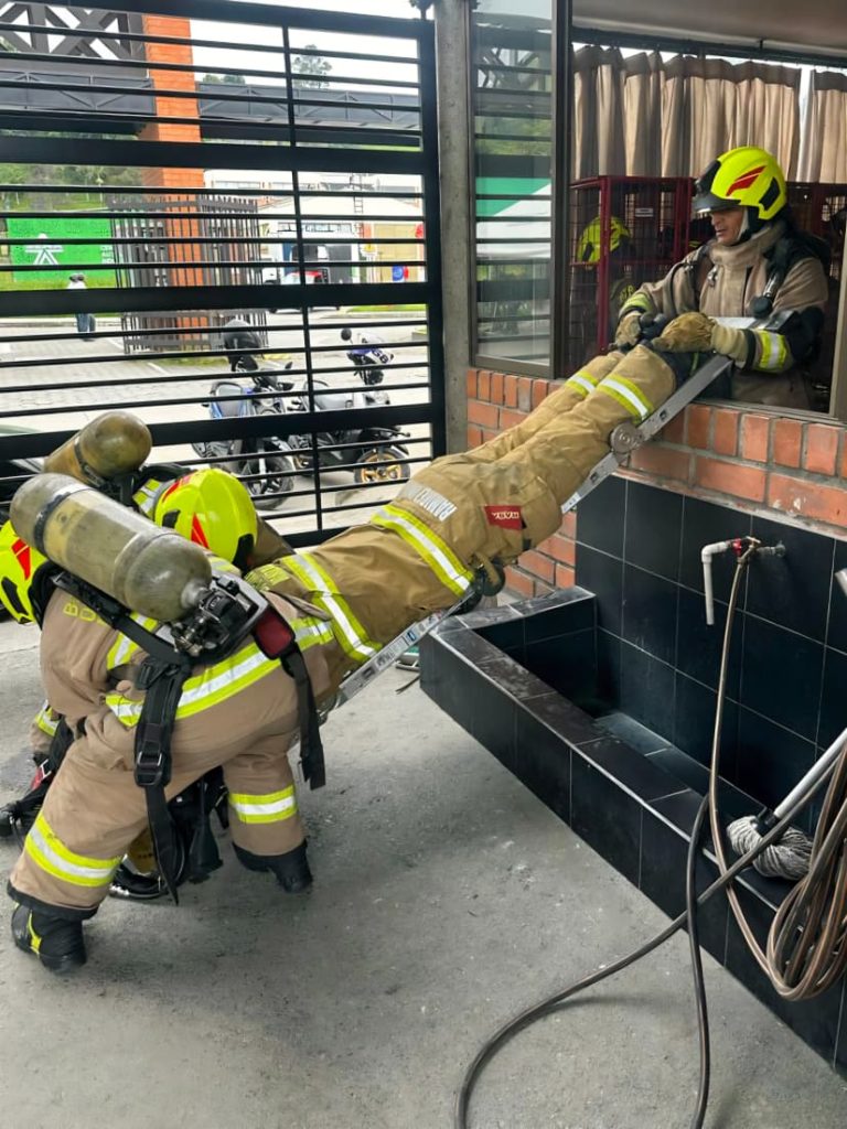 Con el propósito de consolidar la capacidad operativa y garantizar una atención más efectiva en situaciones de emergencia, el Cuerpo Oficial de Bomberos de Manizales realizó hoy un entrenamiento especializado en maniobras y técnicas de rescate de bombero caído.