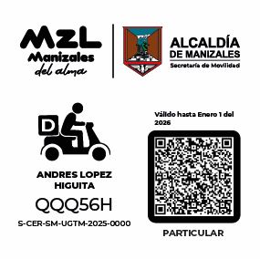 Imagen: stickers de identificación oficial para domiciliarios, que permiten el uso de las zonas exclusivas debidamente señalizadas y supervisadas por la Secretaría de Movilidad de Manizales